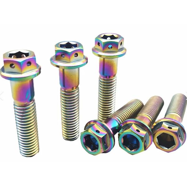 M8 M6 Metal Hex Flange Bolt Gold Anodized Plated Aluminum 6061 customized colors Images |